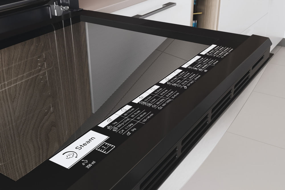 Per controllare lo stato di cottura del cibo non c’è più bisogno di aprire la porta del forno. La distribuzione della luce nella cavità è ottimizzata dalla posizione della lampada interna, installata nella parte frontale superiore.>