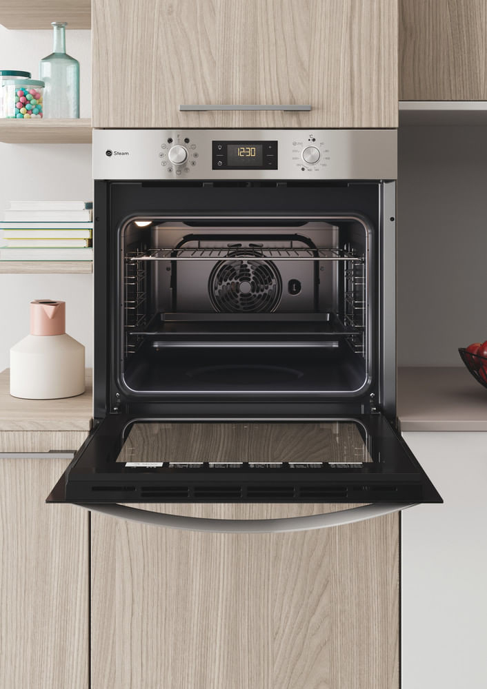 I forni Indesit hanno una capacità interna fino a 71 lt. Ma non solo, hanno anche la leccarda più grande per avere più spazio per le tue ricette.>