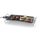Fiësta è dotato di una piastra di cottura liscia ed una con profilo in rilievo, con una superficie totale di 26 x 46 cm. La piastra è particolarmente indicata per preparare carne, pesce, verdure, e perfino uova e crêpe senza burro. Grazie al profilo in rilievo, la griglia è particolarmente adatta anche a cuocere e arrostire, nonché per grigliare e per l'uso come barbecue. Comodo in cucina, simpatico a tavola, ma indicato anche per l'uso in giardino o sul balcone. Per un risultato di cottura perfetto, senza gas o carbonella. Burro e olio sono superflui, per un risultato sano e leggero. Fiësta è dotato di doppio strato antiaderente, per evitare che gli alimenti si attacchino e facilitarne la pulizia con semplice carta da cucina o in lavastoviglie Con sensore amovibile e termostato di precisione regolabile fino a 215°C e sulla temperatura di 90°C per una cottura dolce. Dotata di spia luminosa e maniglie termoisolanti. Completo di spatole in legno.