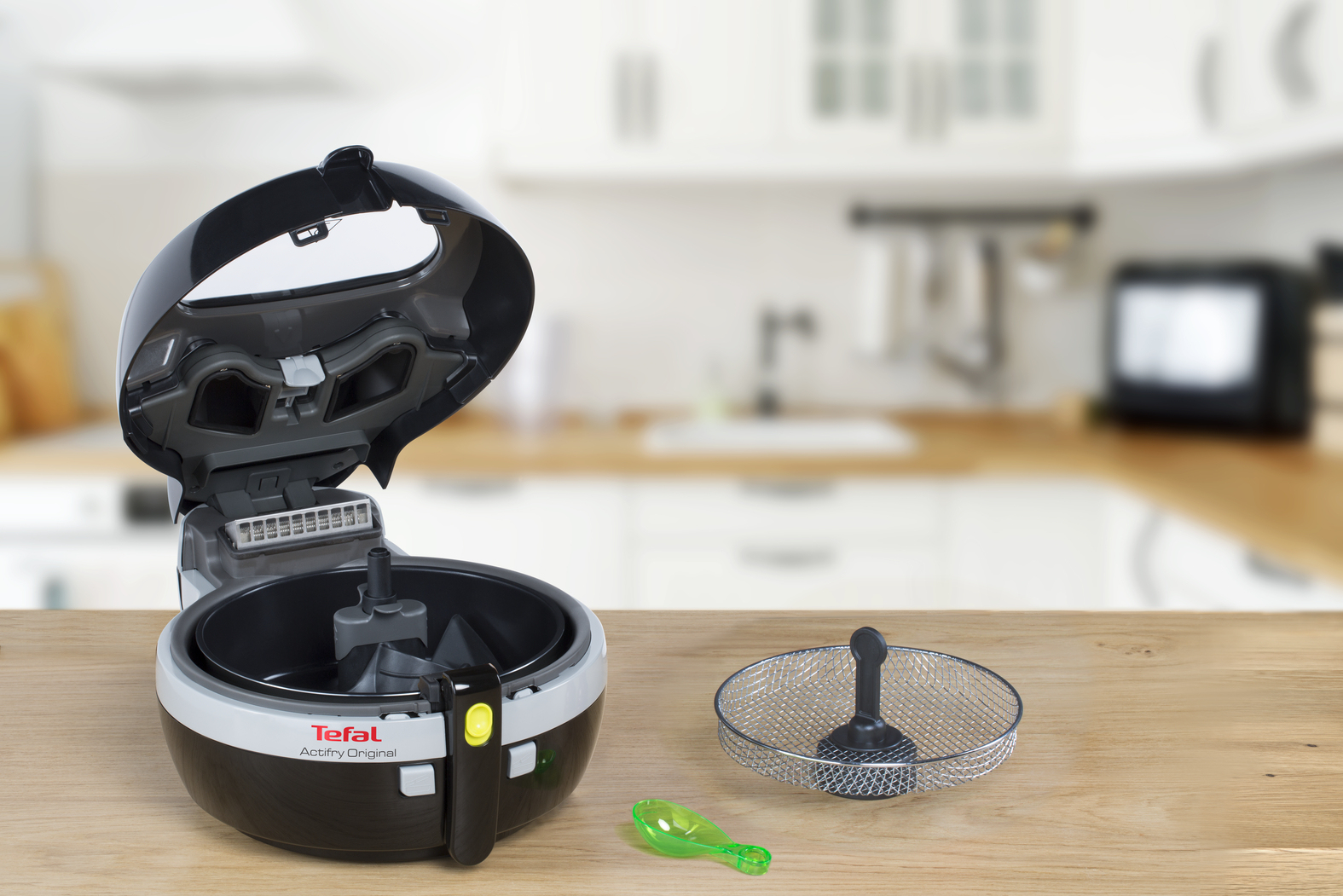Tefal ACTIFRY Original FZ7100 RELIFT FZ710. Tipo di prodotto: Friggitrice, Capacità friggitrice: 1 kg, Tecnologia di frittura a basso contenuto di grassi: ActiFry. Tipo di costruzione: Singolo, Colore del prodotto: Bianco, Tipo di controllo: Pulsanti. Potenza: 1400 W. Larghezza: 317 mm, Profondità: 434 mm, Altezza: 210 mm. Larghezza imballo: 398 mm, Profondità imballo: 398 mm, Altezza imballo: 245 mm