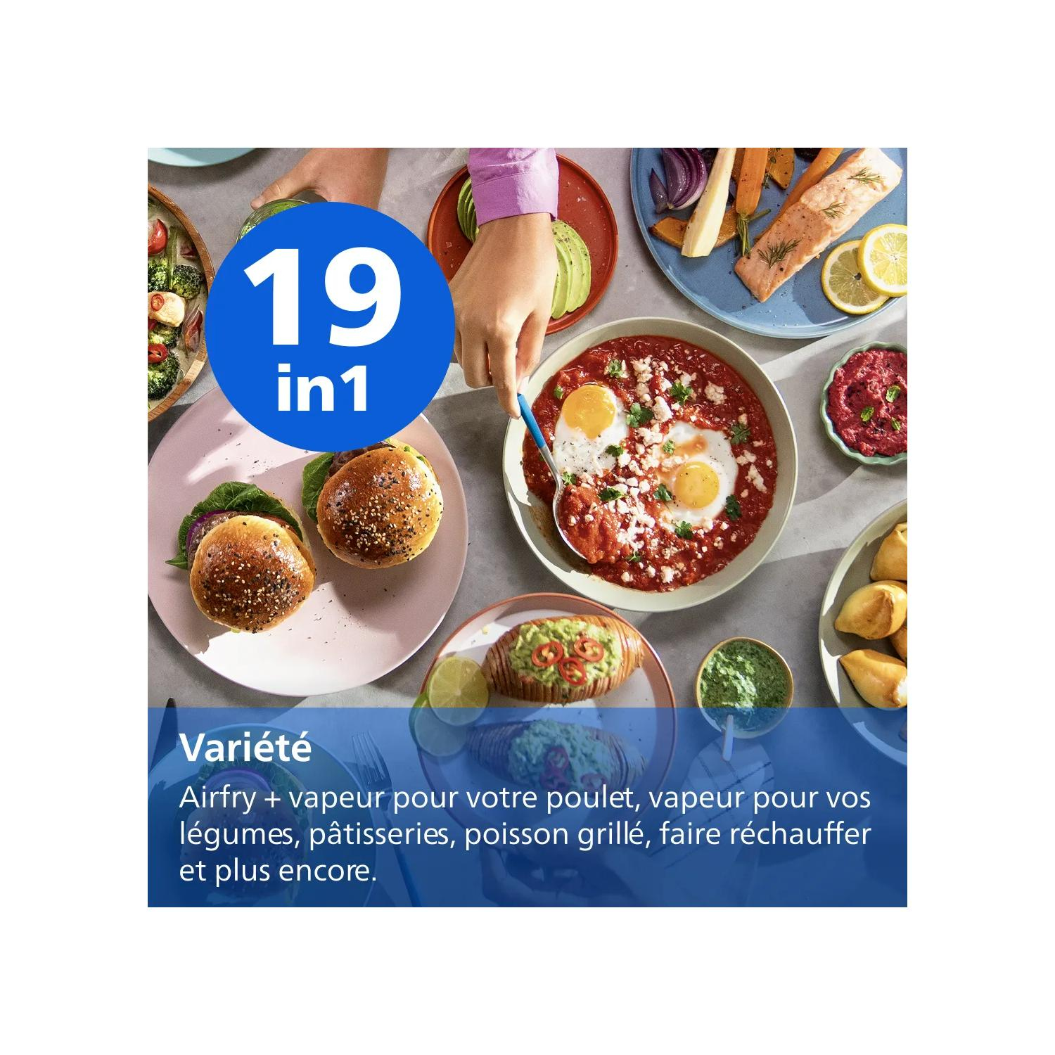 Due cestelli per friggere, cuocere al forno, arrostire e grigliare e uno per la cottura a vapore. Goditi pasti perfettamente cotti grazie alla tecnologia RapidAir Plus e Air Steam