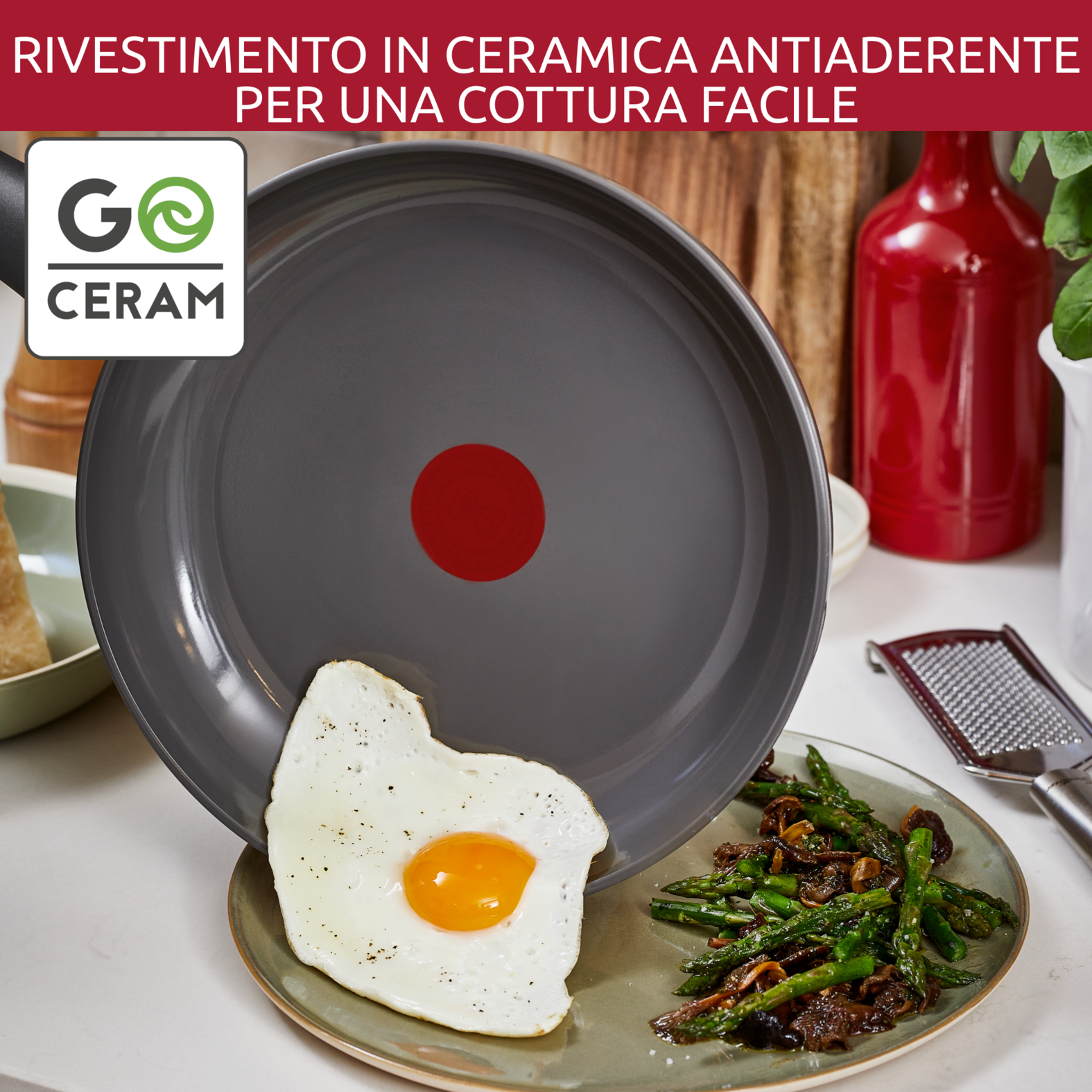 Scopri Risorsa by Lagostina, la gamma di padelle con Goceram, il rivestimento in ceramica antiaderente che assicura un'antiaderenza sorprendente e prestazioni elevate. Progettate con corpo in alluminio riciclato al 100%*, materiali riciclabili** e con l'uso di pack in fibra riciclata, queste padelle hanno un impatto ambientale ridotto. La tecnologia ThermoSignal e il fondo a induzione assicurano una cottura impeccabile e una distribuzione uniforme del calore, per piatti deliziosi. Risorsa è compatibile con tutti i piani cottura, inclusi gas e induzione