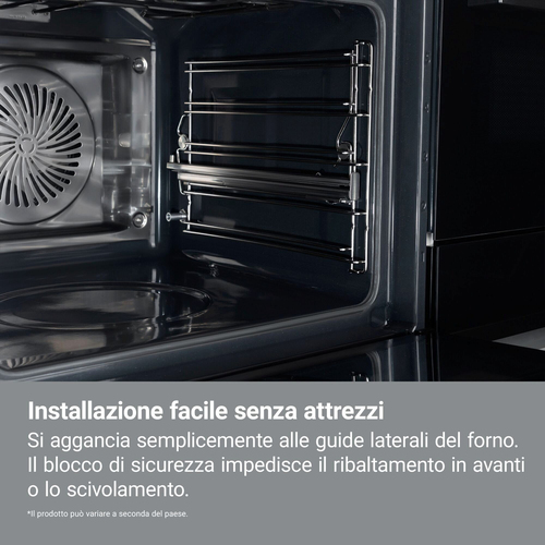 Le nostre guide telescopiche completamente estraibili rendono ancora più facile la preparazione dei tuoi piatti. Potrai comodamente estrarre le griglie: il sistema di bloccaggio impedisce che si ribaltino in avanti o scivolino fuori, agganciandosi facilmente alle guide laterali esistenti.