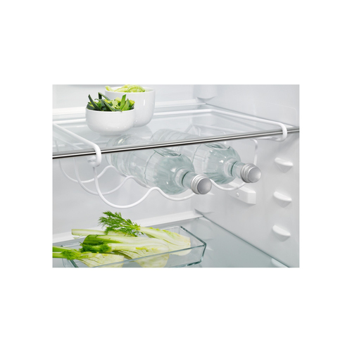 Mantieni le bibite fresche e il frigorifero ordinato grazie al portabottiglie universale. La griglia può ospitare tre bottiglie da 1,5 l o sei lattine e si attacca facilmente alla parte inferiore del ripiano in vetro. Questa soluzione salvaspazio offre un facile accesso alle bibite fresche.