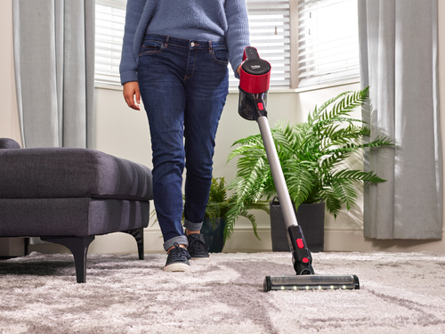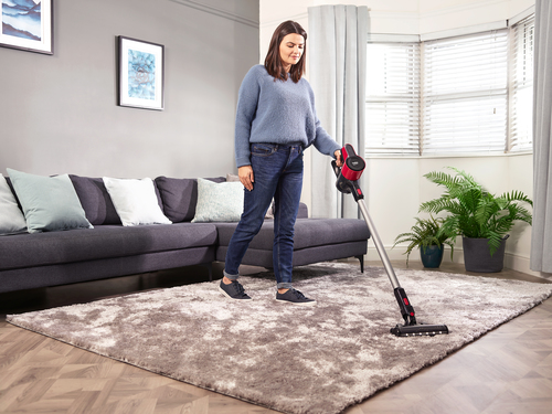 Beko VRT50121VR. Tipo di prodotto: Aspirapolvere a bastone, Tipo di contenitore della polvere: Senza sacchetto, Colore del prodotto: Rosso. Tipo di pulizia: Secco, Sistema di filtraggio dell'aspirapolvere: MIF, Metodo di separazione dello sporco: Ciclonico. Alimentazione: Batteria, Massima potenza in entrata: 110 W, Potenza motore: 110 W. Larghezza imballo: 190 mm, Profondità imballo: 290 mm, Altezza imballo: 770 mm. Larghezza: 270 mm, Profondità: 220 mm, Altezza: 1220 mm
