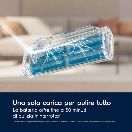 per una pulizia fino a 50 min su una singola carica.