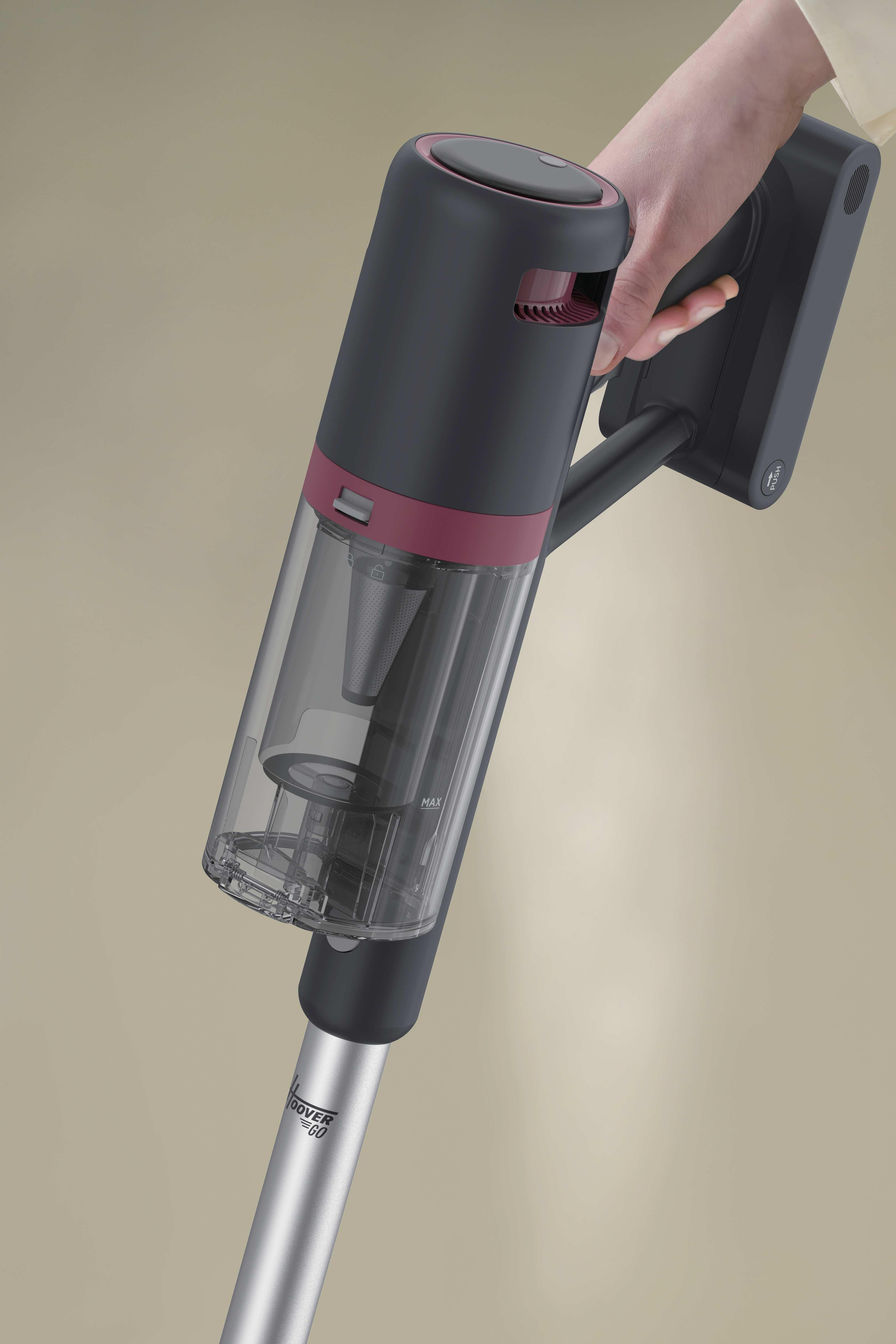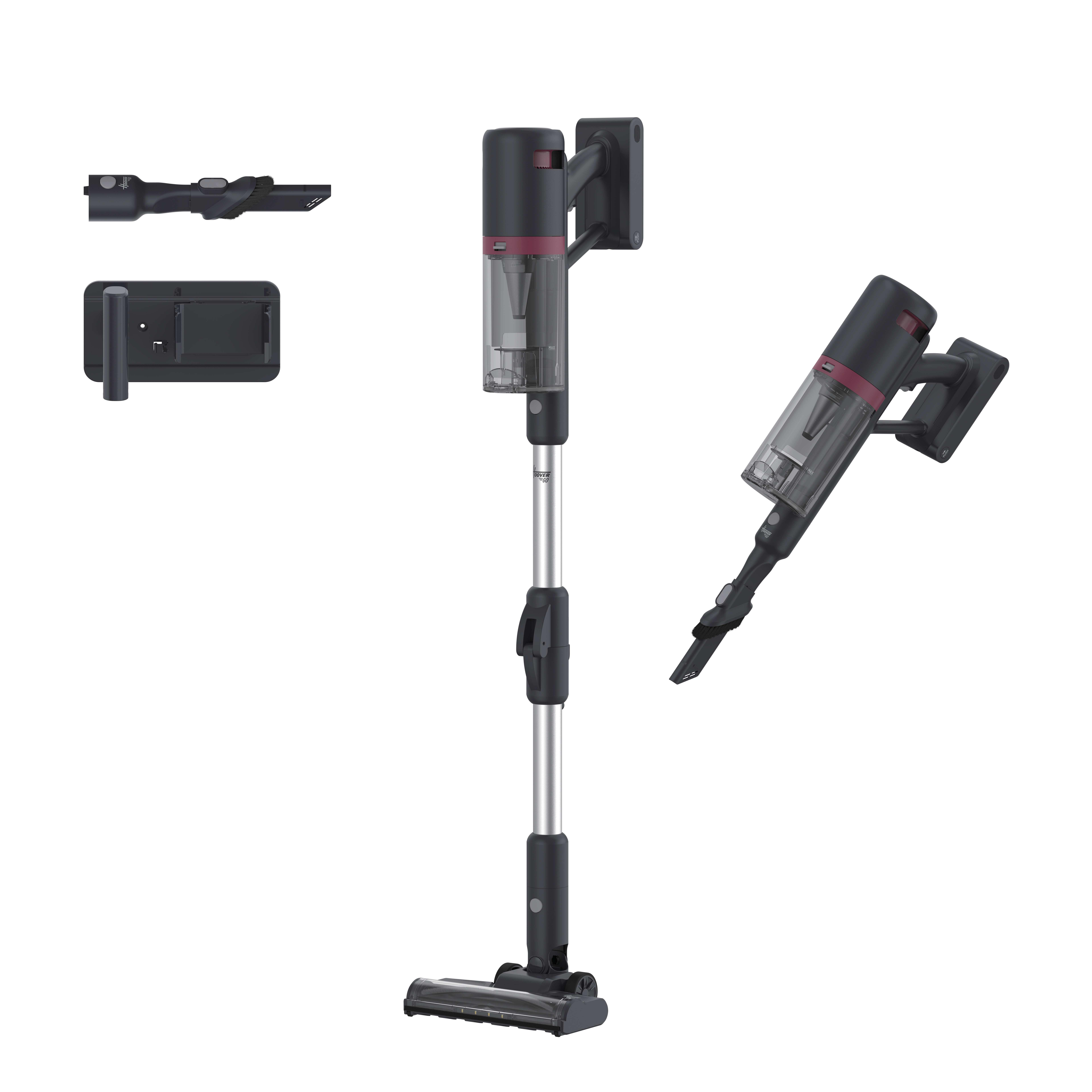 Hoover HFG10HX 011. Tipo di prodotto: Aspirapolvere elettrica, Tipo di contenitore della polvere: Senza sacchetto, Colore del prodotto: Nero. Tipo di pulizia: Secco, Metodo di separazione dello sporco: Filtro, Superficie di pulizia: Tappeto, Superfici rigide, Tappezzeria. Controllo dell'energia: Elettronico. Alimentazione: Batteria, Massima potenza in entrata: 200 W, Voltaggio della batteria: 25,9 V. Larghezza: 260 mm, Profondità: 242 mm, Altezza: 1110 mm