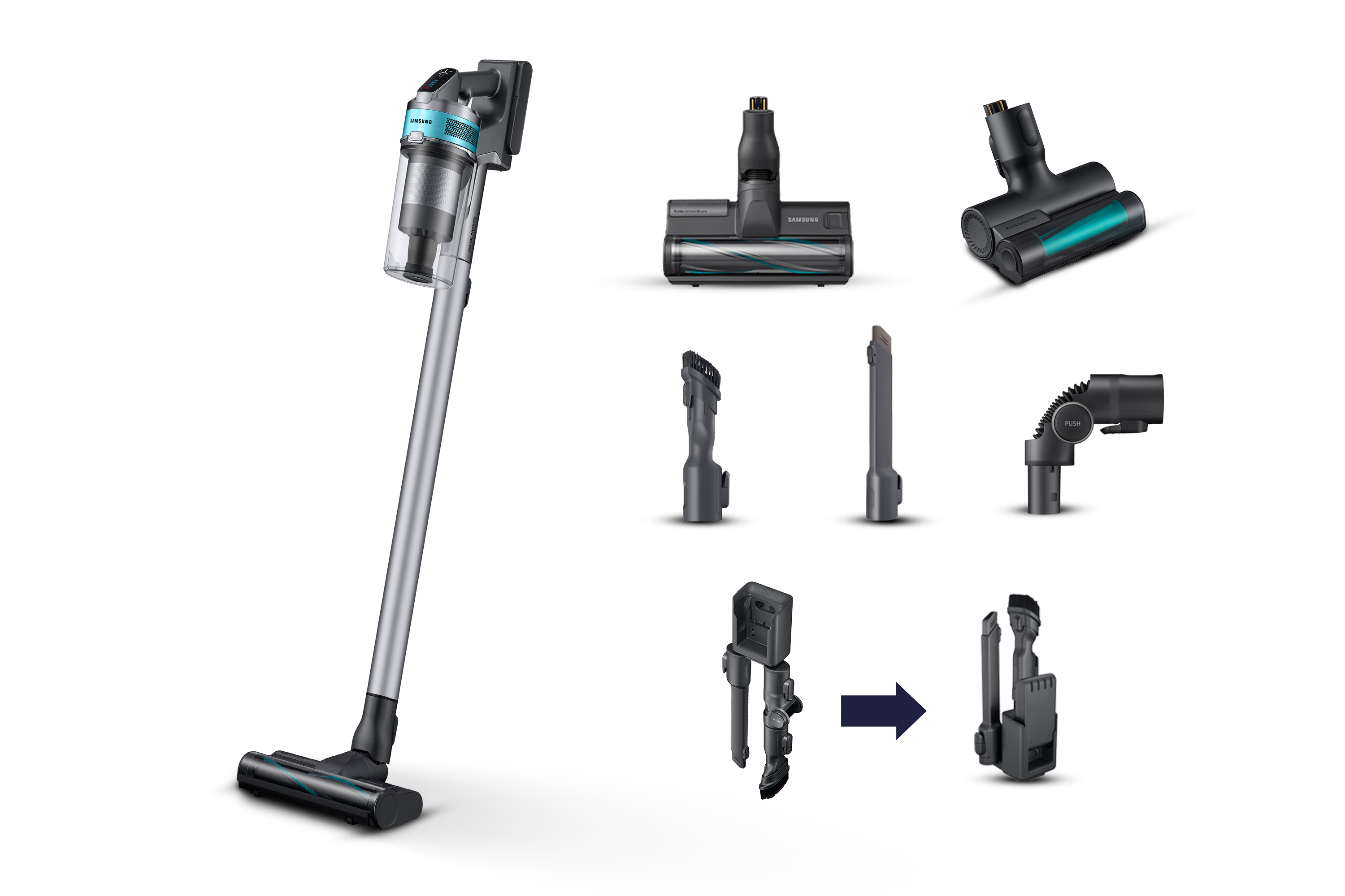 La potenza pura di SAMSUNG Jet™ ha tanti alleati: scopri i diversi accessori da abbinare alla scopa elettrica che garantiscono pulizia e igiene su ogni tipo di superficie.