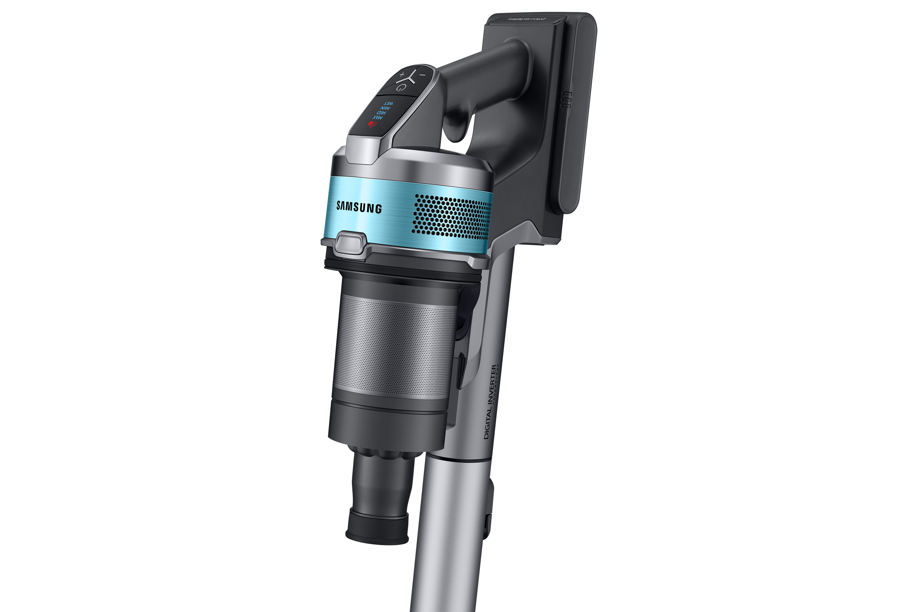 Ecco tutta la potenza aspirante che cerchi per pulire vari tipi di pavimento, grazie al motore Digital Inverter SAMSUNG Jet™ raggiunge una potenza aspirante fino a 200W[1]