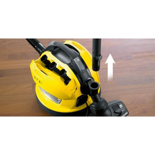 Kärcher VC 6300. Alimentazione: 220 - 240V, 50/60 Hz. Tipo: A cilindro, Capacità del contenitore: 4 L, Colore del prodotto: Nero, Giallo. Sistema di filtraggio dell'aspirapolvere: HEPA, Metodo di separazione dello sporco: Filtro, Tipo di pulizia: Secco. Peso: 7 kg. Dimensioni (LxPxA): 383 x 370 x 373 mm, Consumi: 2000 W