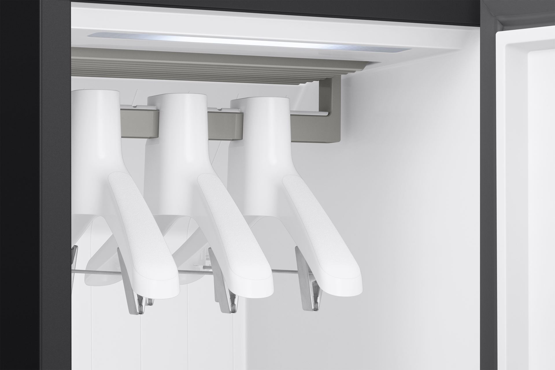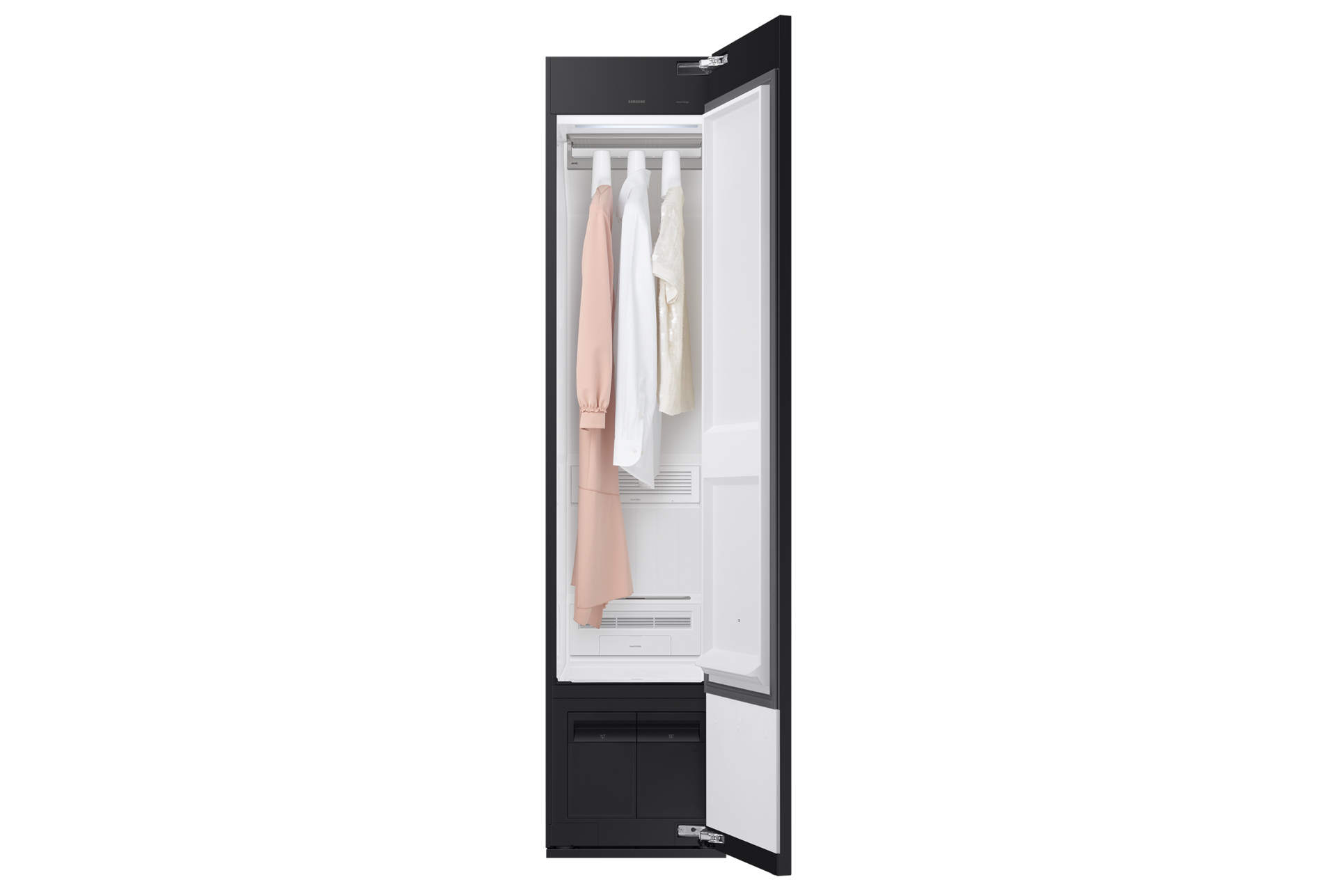 Samsung AirDresser™ 60 Cm. Colore del prodotto: Specchio, Adatto per materiali: Cotone, Nylon, Poliestere, Lana, Tipo di controllo: Touch. Larghezza: 445 mm, Profondità: 595 mm, Altezza: 1960 mm. Larghezza imballo: 529 mm, Profondità imballo: 759 mm, Altezza imballo: 2050 mm