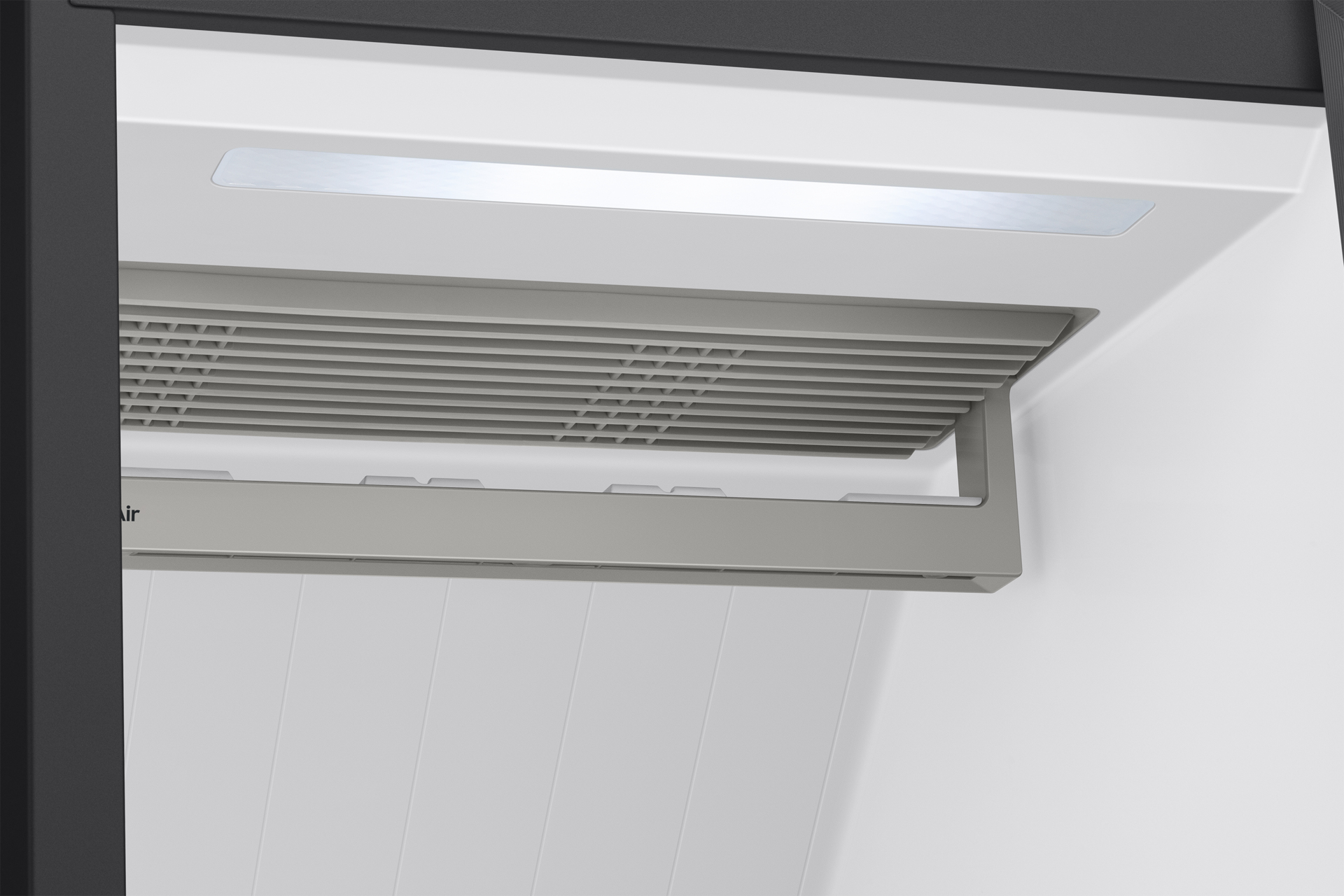 Ottieni un ambiente piacevole in camera tua grazie alla gestione dell'umidità, senza bisogno di utilizzare un deumidificatore. Quando la porta è aperta, la funzione di deumidificazione degli spazi aspira l'aria dalla stanza, estrae l'umidità ed espelle l'aria secca. In questo modo potrai ridurre l'umidità dei vestiti e deumidificare l'ambiente circostante.