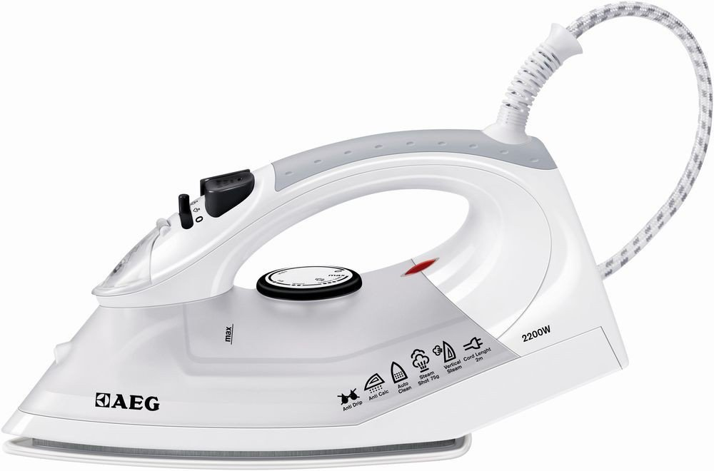 AEG DB 1370. Tipo: Ferro da stiro a secco e a vapore, Lunghezza cavo: 2 m, Emissione concentrata vapore: 75 g/min. Potenza ferro: 2200 W. Peso: 1,2 kg