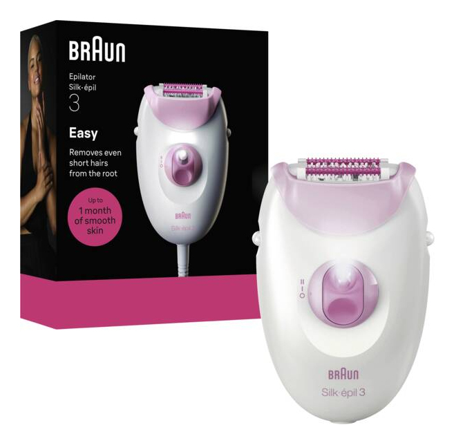 Braun Silk-epil 3-000. Colore del prodotto: Rosa, Numero di pinzette: 20 pinzette, Tecnologia pinzette: MicroGrip. Alimentazione: AC. Paese di origine: Germania. Tipo di imballo: Scatola, Larghezza imballo: 124 mm, Profondità imballo: 160 mm