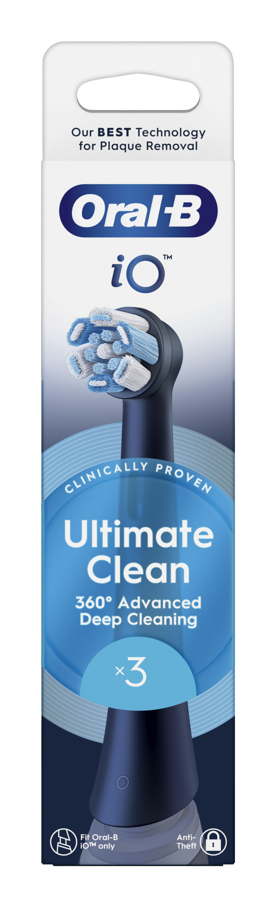 Oral-B Testine di Ricambio iO Series Ultimate Clean Nero, testine rotonde di ricambio originali, con setole CrissCross per pulizia e rimozione della placca avanzate e in profondità, 3