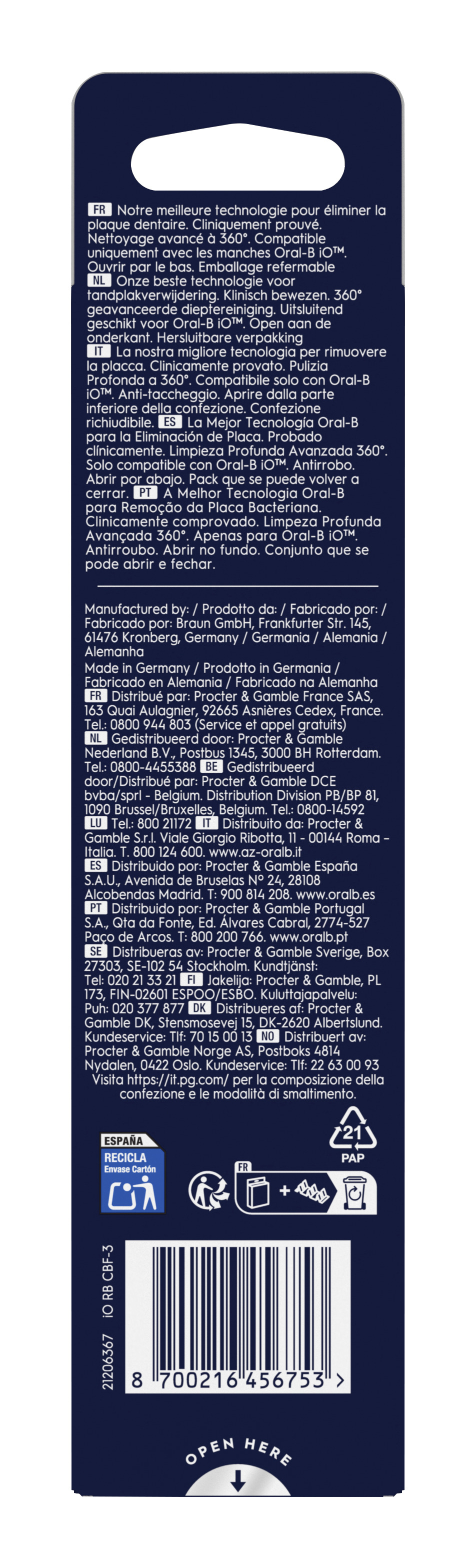 Oral-B Testine di Ricambio iO Series Ultimate Clean Black, testine rotonde di ricambio originali, con setole CrissCross per pulizia e rimozione della placca avanzate e in profondità, 3. Numero di testine incluse: 3 pz, Colore del prodotto: Nero, Paese di origine: Germania. Tipo di imballo: Scatola da appendere