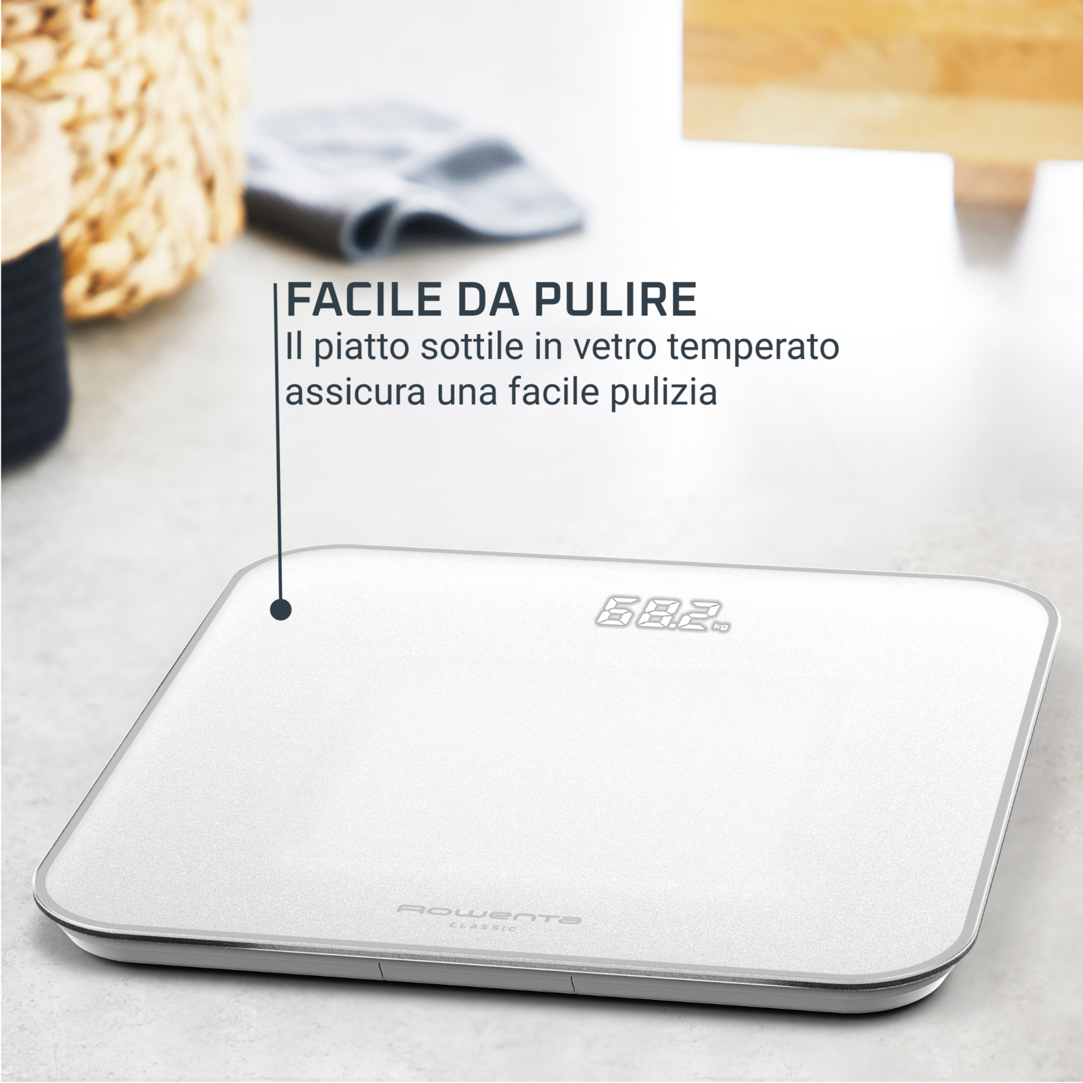 Rowenta Classic 2.0, Bilancia Da Bagno, Schermo Invisibile Facile da Leggere, Bianco, BS1901
