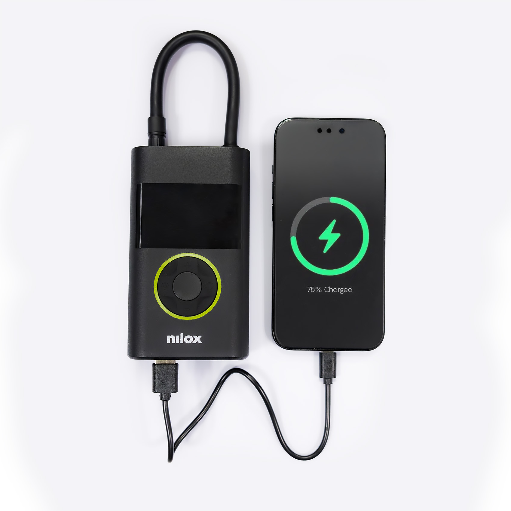 Scopri l'innovativo compressore d'aria portatile e multifunzione Nilox, progettato per garantire prestazioni eccellenti e comodità ovunque tu sia.