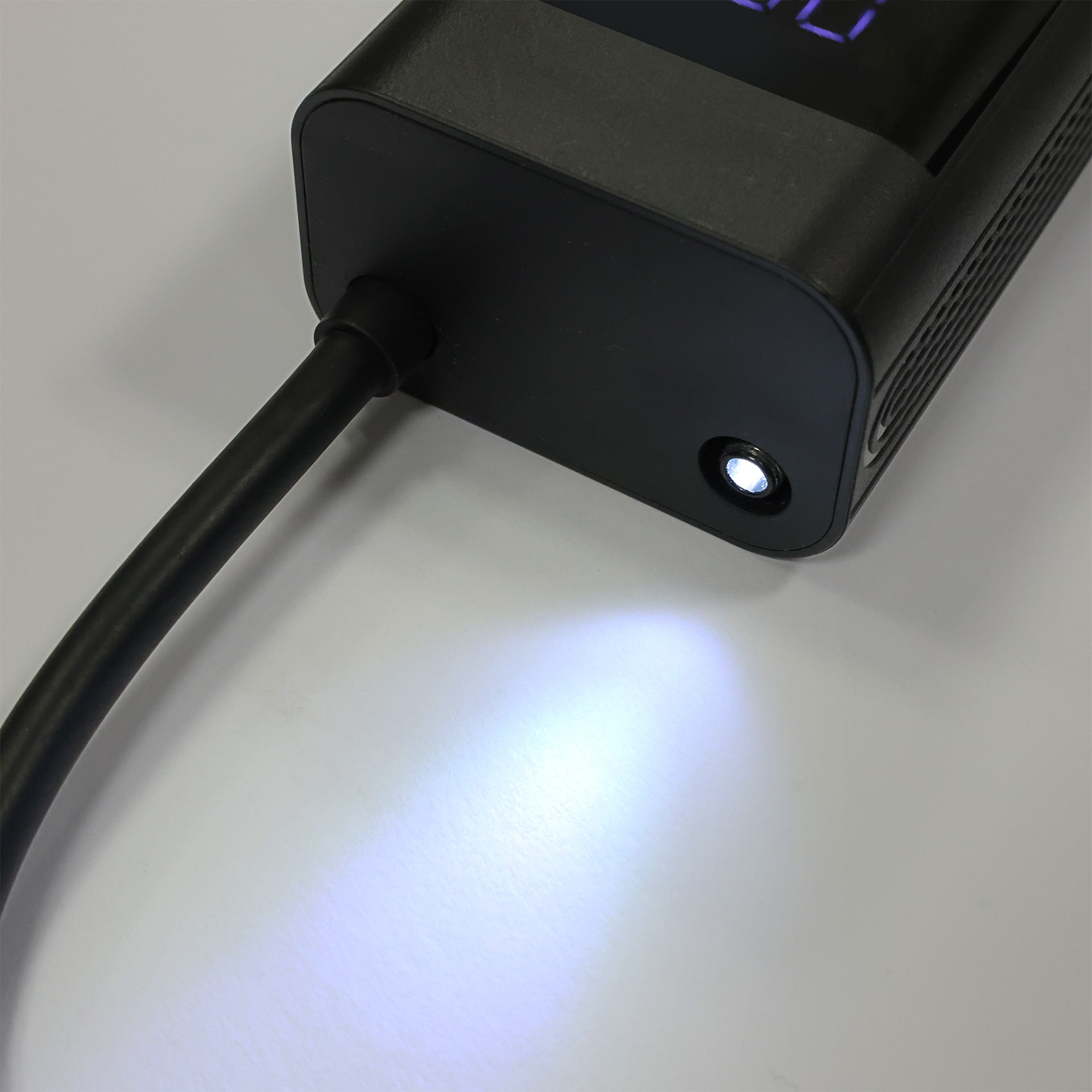 La pratica luce led, posizionata nella parte superiore del compressore, ti permetterà d'individuare la camera d'aria anche in ambienti poco luminosi; in aggiunta, la luce led presente nella parte inferiore del compressore si trasforma in una torcia LED/luce d'emergenza, ed è perfetta per situazioni di bassa visibilità o per illuminare i tuoi lavori notturni.