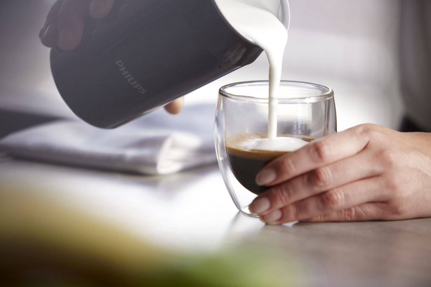 Il montalatte Philips ti offre la possibilità di assaporare a casa una grande varietà di ricette fredde e calde a base di caffè. Grazie alla sua innovativa frusta per creare la schiuma, puoi arricchire deliziose bevande a base di caffè e latte con una crema liscia e vellutata.