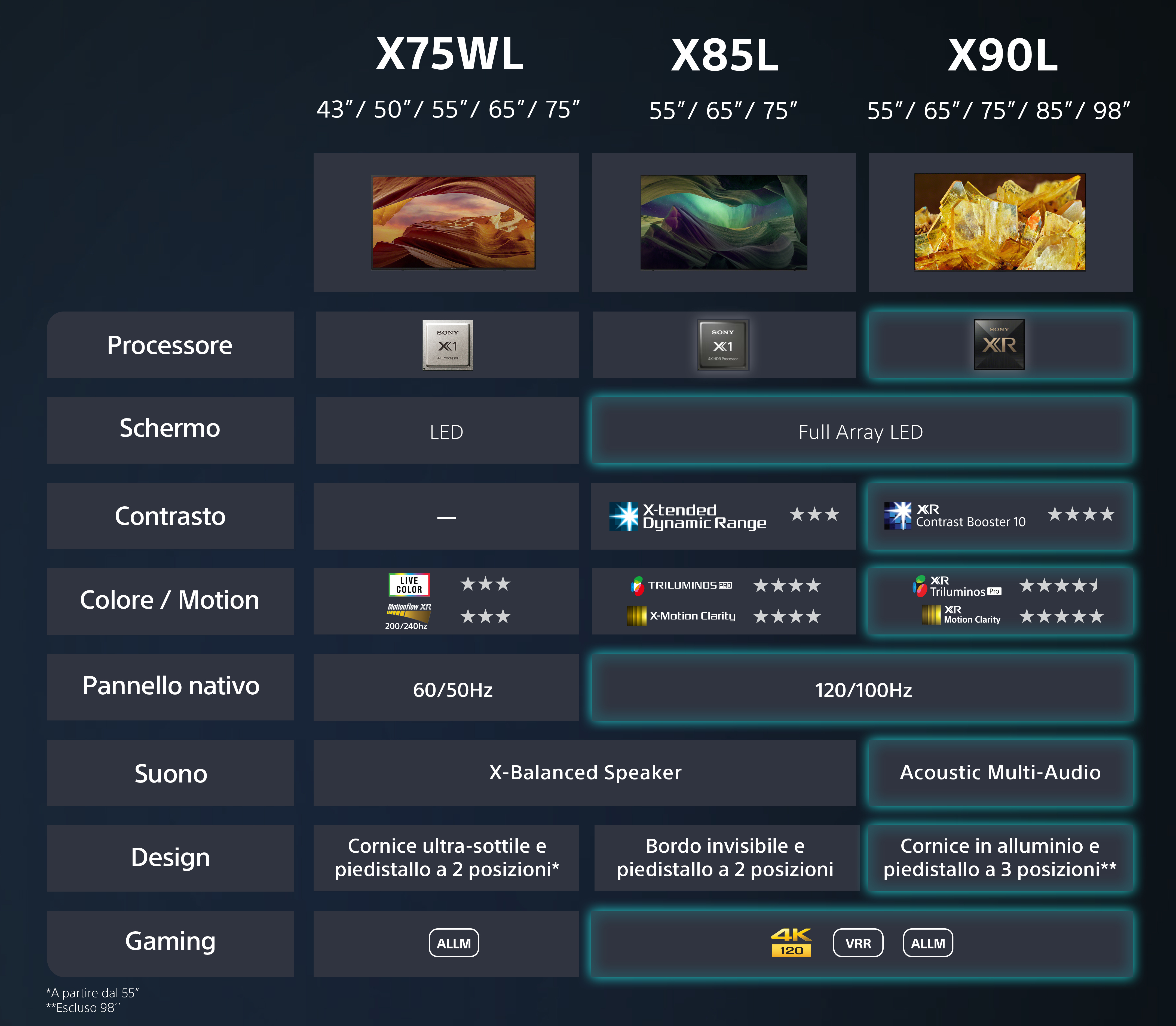 Tecnologia di elaborazione immagine | Sony Dynamic Contrast Enhancer, Sony Live Colour, Sony XR Contrast Booster, Sony XR Smoothing, Sony XR Triluminos Pro |