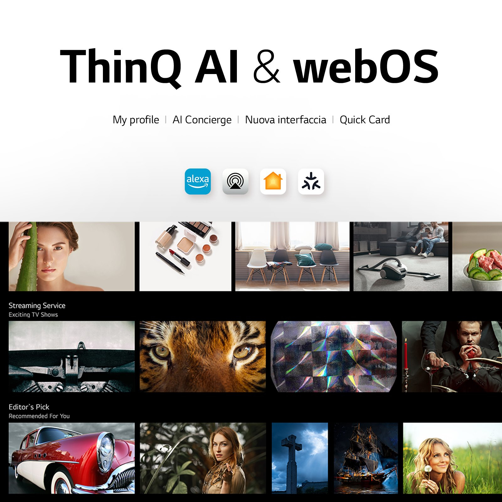 Potrai controllare il tuo TV LG con la tua voce con l'assistente Google e con Alexa e accedere al mondo dell’entertainment in maniera più rapida. E la compatibilità con i servizi Apple ti permette di condividere contenuti sul TV con un tocco dal tuo iPhone e iPad.