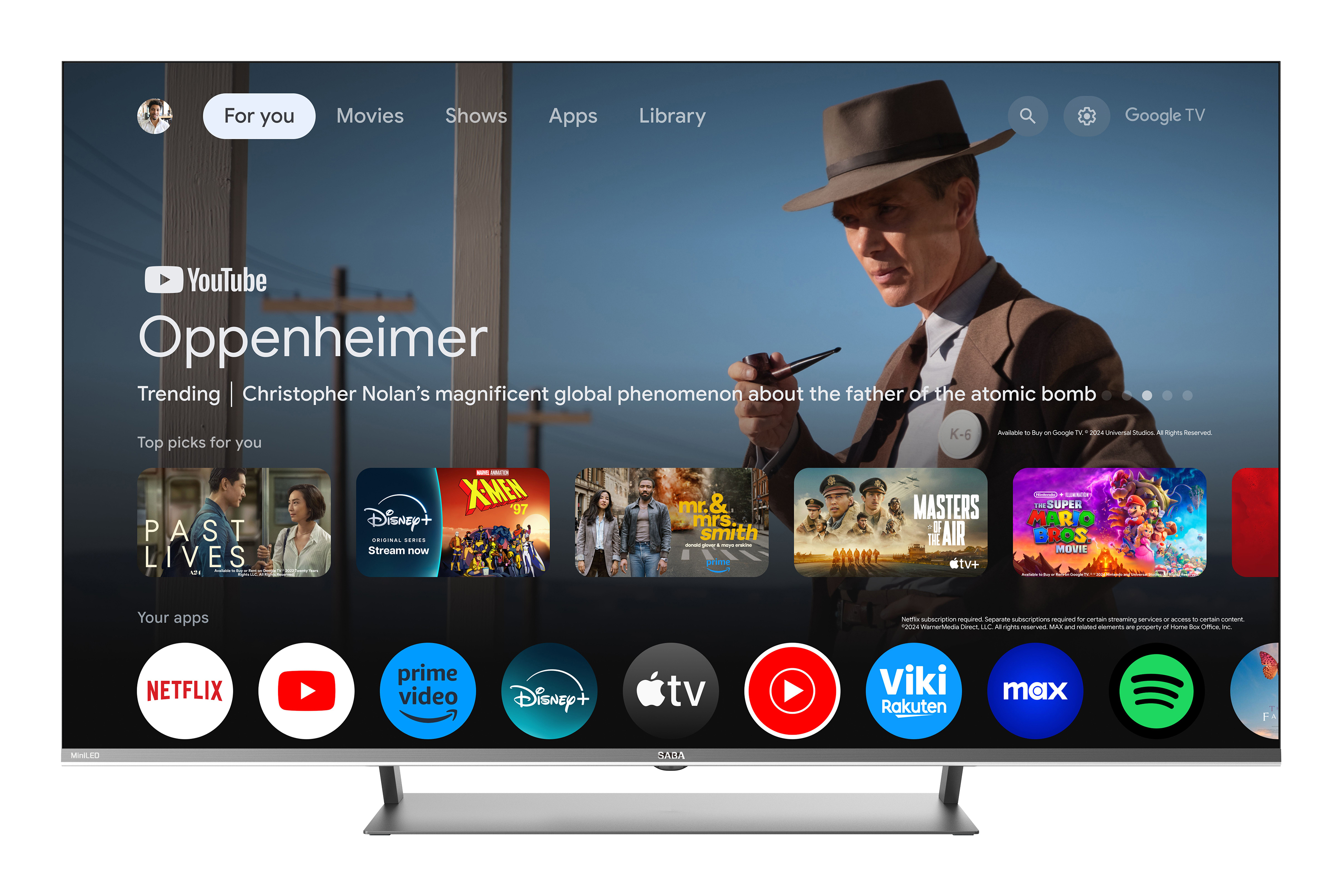 I TV SABA della serie M9 SMART sono dotati di pannello con filtro QLED e retroilluminazione Full Array MiniLED e local dimming. Sistema operativo GOOGLE TV 5.0 compatibile con tutte le principali APP di streaming sul mercato come ad esempio Youtube, Netflix, Prime Video, Disney+, Paramot, DAZN e molte altre e sono compatibili con gli standard Apple Airplay ed Apple Home. Sono dotati di design privo di bordi per lasciare il massimo spazio alle immagini riducendo al contempo l'ingombro del televisore. Tutti i TV SABA sono certificati TivuSAT, garantendo quindi la piena compatibilità con le smartCAM disponibili sul mercato e assicurando la corretta sintonizzazione dei canali del digitale terrestre tramite il segnale satellitare e garantendo la corretta numerazione canali prevista dal sistema LCN nazionale ad ogni aggiornamento automatico della lista canali disponibile. Il triplo ter DVBT2 / C / S2 HEVC Main 10 assicura piena compatibilità con il segnale digitale terrestre e il segnale satellitare. La compatibilità con Dolby Atmos regala audio di altissima qualità mentre la compatibilità Dolby Vision garantisce immagini ricchissime di dettagli.