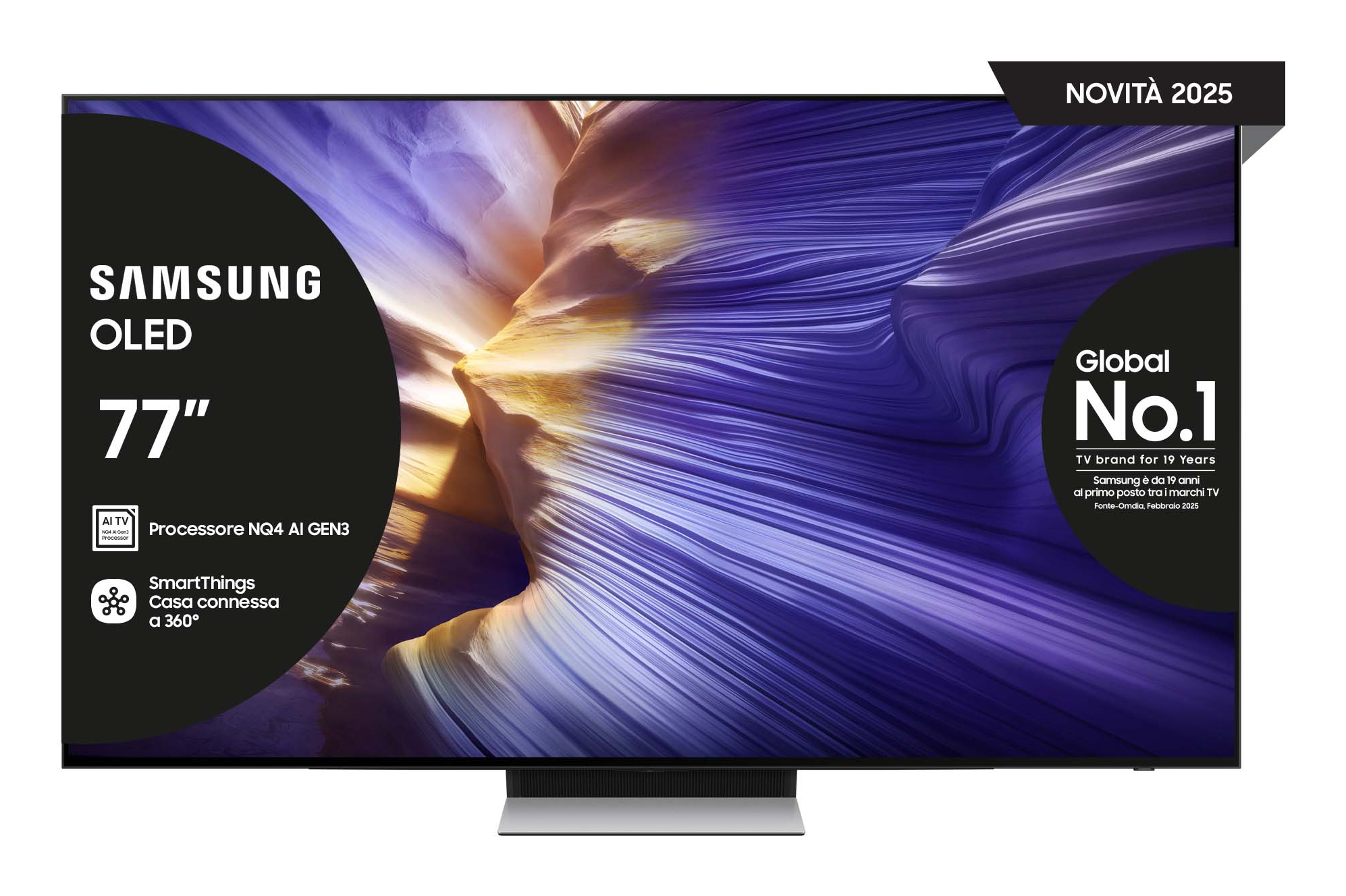 Samsung Smart TV 77" QE77S90FAEXZT OLED 4K 2025. Dimensioni diagonale schermo: 195,6 cm (77"), Risoluzione del display: 3840 x 2160 Pixel, Tipologia HD: 4K Ultra HD, Tecnologia display: OLED, Forma dello schermo: Piatto. Smart TV. Tecnologia di interpolazione del movimento: Motion Xcelerator. Formato del segnale digitale: DVB-C, DVB-S2, DVB-T2. Wi-Fi, Collegamento ethernet LAN. Colore del prodotto: Nero
