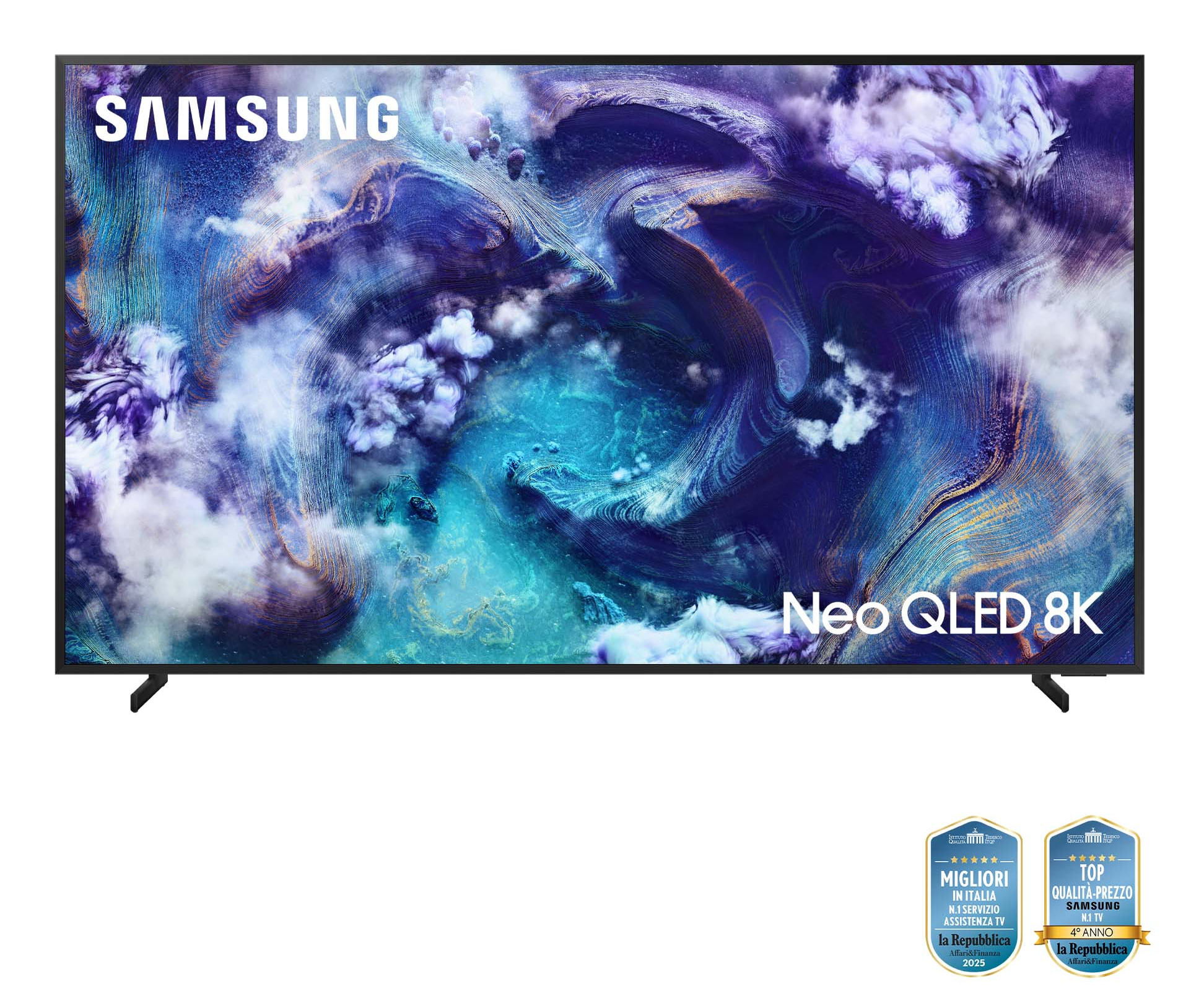 | Tecnologie Samsung (AV/TV) | 8K AI Upscaling, AI Auto Game Mode, Adaptive Sound Pro, Q-Symphony, Quantum Matrix Technology Pro, Real Depth Enhancer Pro, Samsung TV Plus, Workspace |