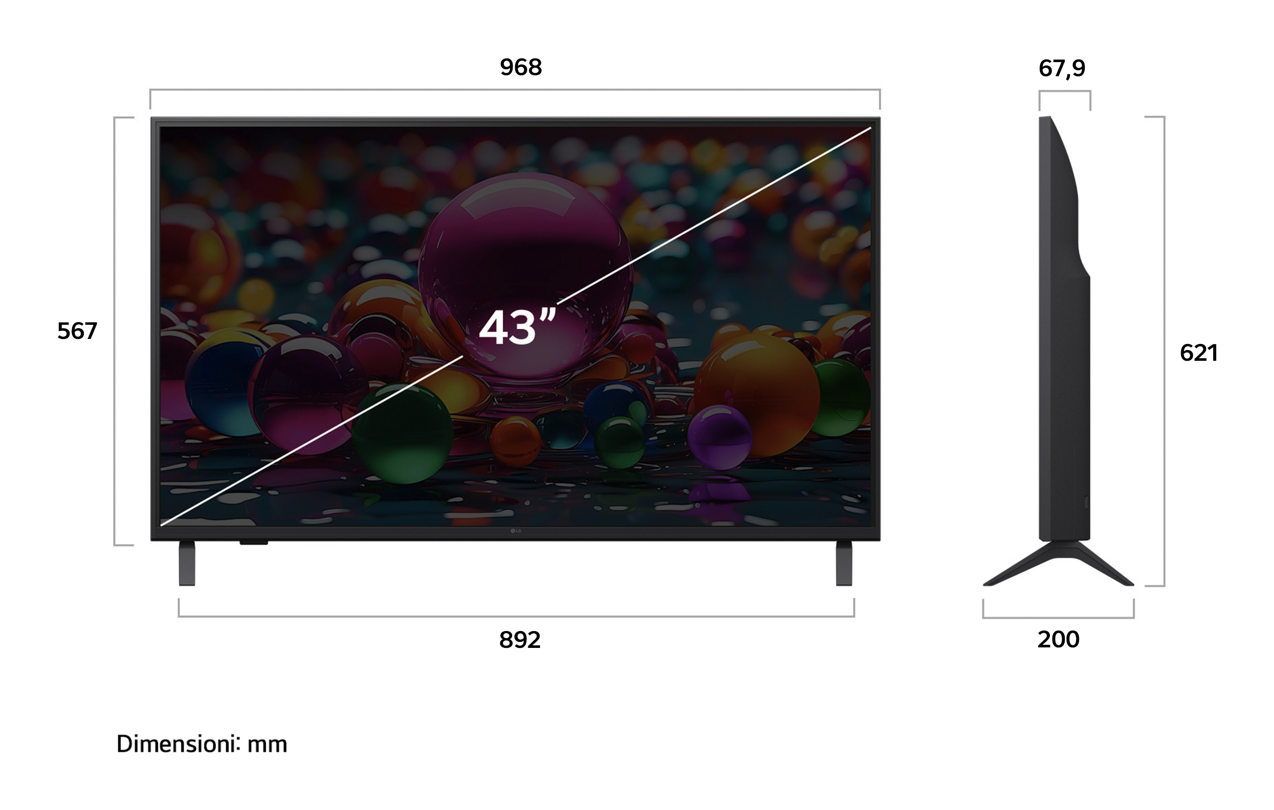 | Dimensioni diagonale schermo | 109,2 cm (43") |