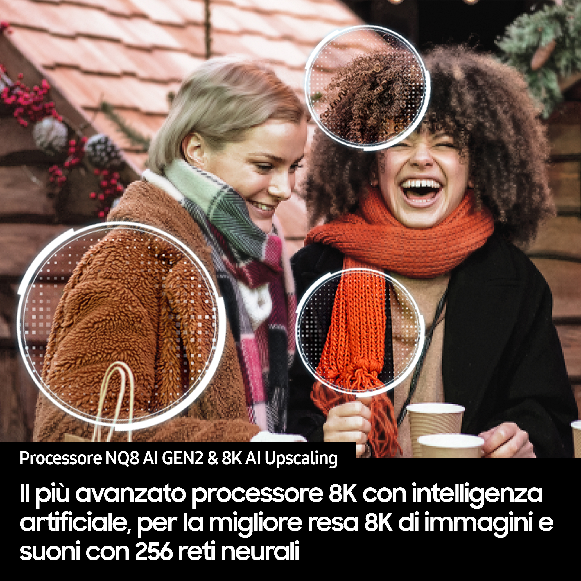 | Tecnologie Samsung (AV/TV) | 8K AI Upscaling, AI Auto Game Mode, Adaptive Sound Pro, Q-Symphony, Quantum Matrix Technology Pro, Real Depth Enhancer Pro, Samsung TV Plus, Workspace |