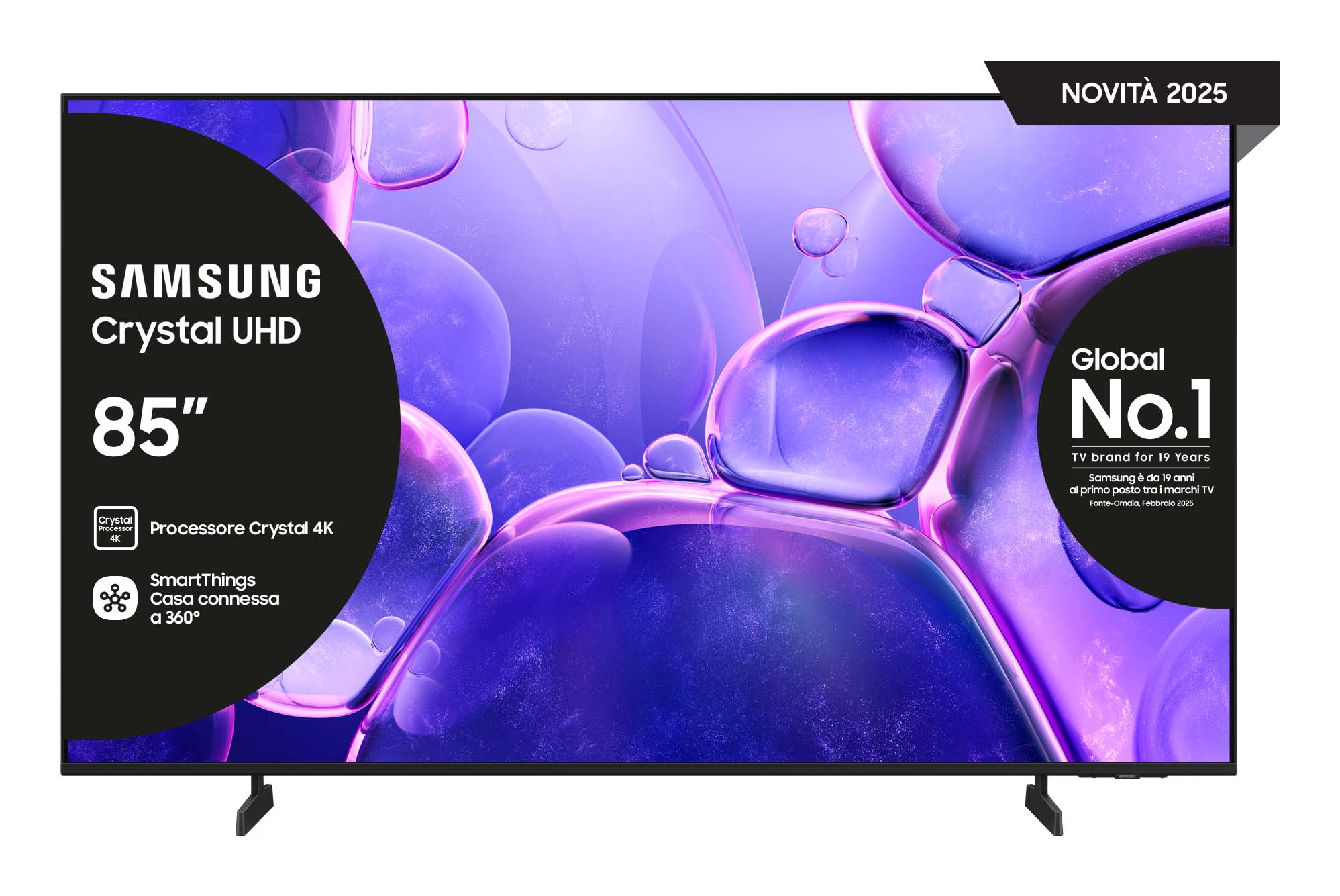 Samsung Crystal UHD 85" UE85U8000FUXZT 4K, Processore Crystal 4K, HDR, Smart Experience, OTS Lite & Adaptive Sound, Metal Stream Design, Smart TV, 2025