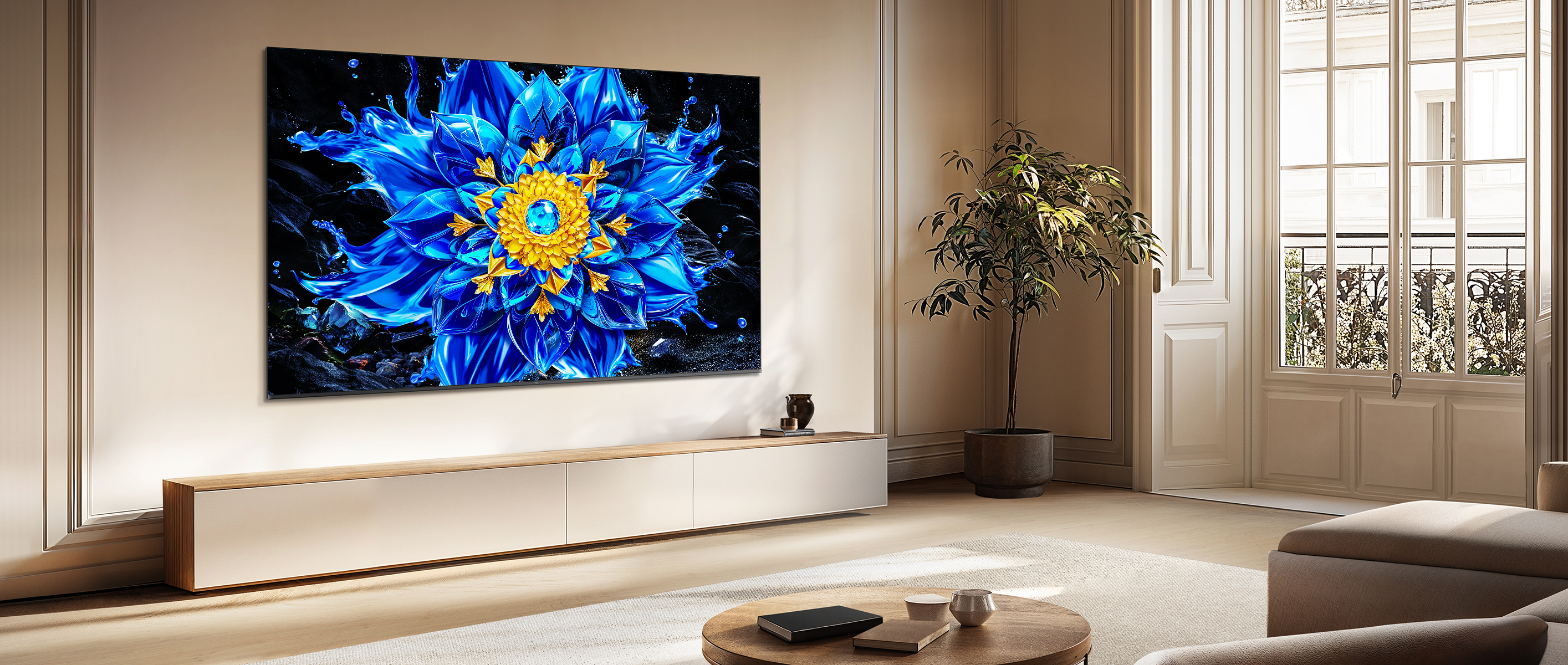 Il modello 98P8L presenta un design ultrasottile che si integra perfettamente alla parete, trasformando il TV in un elegante elemento d’arredo e in una nuova tela per le tue opere d’arte.